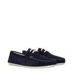 The product with MPN 1DD078054005F0008 and code F81028 suede in blue is a loafers designed by Prada. It has features like side logo.