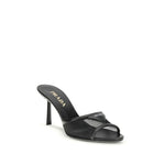 The mesh slipper Sandals by Prada combine lightness and contemporary style in a sophisticated design. The mesh strap is accented by the iconic triangular leather logo plaque, while the stiletto heel lends elegance and sleekness to the silhouette. The logo-embellished sole completes the model with a distinctive brand detail.