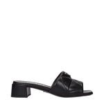 The product with MPN 1XX656038035F0002 and code F84279 leather in black is a sandals designed by Prada. It has features like front logo.
