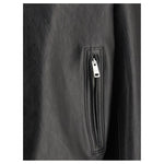 Prada’s Biker Leather Jacket combines a bold and sophisticated design. The snap-button front closure offers practicality and clean styling. Two zippered welt side pockets and a zippered chest pocket add a functional and modern touch, while a zippered sleeve pocket further enhances the garment with useful and stylish details. The classic lapels lend a touch of sophistication, complementing the bold, contemporary look of this leather jacket, ideal for a bold, urban look.