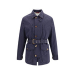 Brunello Cucinelli’s saharan Jacket in membraned nylon is a technical and stylish outerwear designed to offer protection and style. Featuring a double zipper and button closure, it has a structured collar that can be held up for added coverage. High zippered pockets and low patch pockets with a flap and button combine functionality and design, while adjustable cuffs and belt loops allow for a customized fit. Fully lined and padded with Thermore®, it is enhanced by practical interior button pockets and a pen pocket.