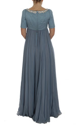 Gorgeous brand new with tags, 100% Authentic DOLCE & GABBANA blue silk crystal embedded full length sheath dress.