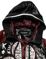 Gorgeous brand new, 100% Authentic Dolce & Gabbana biker jacket is a bold statement piece, crafted from premium leather with a striking multicolor DG King motif. It features a detachable drawstring hood, front zip closure, and biker-style detailing with zippered pockets and cuffs. A fusion of luxury craftsmanship and rebellious streetwear attitude, perfect for standout styling.