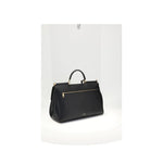 Dolce&Gabbana’s My Sicily Handbag features leather handles and a removable and adjustable leather shoulder strap, offering versatility in carrying. It features a tuck-in closure with vintage brass electroplating details, enhanced by a monogalvanic tag and foil stamp. The interior is functional, with a zippered pocket and a flat pocket, perfect for organizing personal items in style.