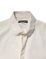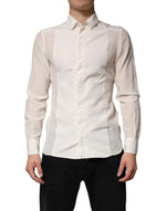 GOLD long-sleeve dress shirt in off white. Crafted from premium materials, it offers a smooth, tailored fit that exudes sophistication. The clean design, refined color combination, and impeccable Italian craftsmanship make it a perfect choice for tuxedos, formal events, or stylish evening ensembles. A timeless piece that adds a touch of luxury to any occasion.