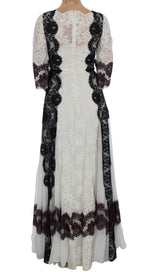 Gorgeous brand new with tags, 100% Authentic DOLCE & GABBANA white with black and brown floral lace silk blend full length dress.