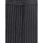 Giorgio Armani’s wide-leg silk Pants stand out for their elegant flowing lines and refined details. Featuring a smooth waistband, concealed fastening, and side pockets, they are embellished with rich, tone-on-tone embroidery made with baguettes and sequins, creating a luminous pinstripe pattern, lending the garment a touch of glamour and sophistication.
