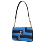 The product with MPN AVENUESLIMSHOULDERCQONAVYSKYLIGHTGOLD and code F85114 leather in blue is a shoulder bags designed by Jimmy Choo. It has features like front logo.