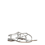 The product with MPN 5Y920D3L1N010F0118 and code F76545 leather in silver is a flip flops designed by Miu Miu. It has features like metallic effect, rhinestone.