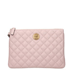 The product with MPN 10155791A039121PV4V and code F85126 leather in pink is a clutches designed by Versace. It has features like front detail, removable handle.