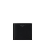 Calfskin Wallet by Saint Laurent, billfold design, interior card slots, bill compartment, iconic brand signature press-stamped on front, grained leather design.