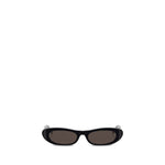 Sunglasses by Saint Laurent, cut-out design, thin acetate frame, iconic brand signature etched on side temples, frame compatible with corrective lenses.