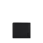 Calfskin Wallet by Saint Laurent, logo plaque on front, bill fold design, internal card slots and bill compartments.