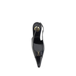 Saint Laurent’s leather Babylone Pumps express bold and sophisticated femininity. Featuring an elongated toe with elegant cut-out details, they are embellished with the iconic YSL metallic element applied to the front. The elasticized slingback strap ensures a comfortable fit, while the leather stiletto heel slims the silhouette with class. The branded insole completes the model with a distinctive touch.