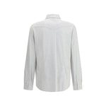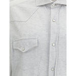 The Brunello Cucinelli knit Shirt is a refined piece that combines the style of a classic shirt with the comfort of knitwear. Crafted in an elegant grey melange, it features a snap button closure, a classic collar, and two front patch pockets with flaps. A perfect balance of casual elegance and excellent craftsmanship.