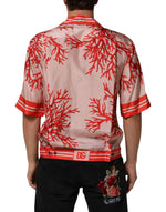 shirt showcases a striking red coral print that captures the brand’s signature Mediterranean flair. Crafted from premium cotton, it features a collared neckline, short sleeves, and a button-down front, blending vibrant elegance with relaxed sophistication—ideal for resort or casual luxury wear.