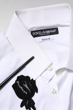 Gorgeous brand new, 100% Authentic DOLCE & GABBANA dress shirt with floral embroidery. The model has a classic neck, short sleeves and a button down closure.