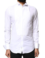 Absolutely stunning, 100% Authentic brand new Dolce & Gabbana white cotton poplin shirt featuring a bib. The model has a classic collared neck, long sleeves and a button down closure.