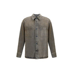 The overdyed Denim Shirt by Fendi embodies a bold, contemporary spirit. Designed with dropped shoulders and chest patch pockets, it balances casual ease with refined craftsmanship. The front is fastened with logo-engraved metal buttons, adding subtle sophistication. Crafted from grey overdyed denim, the shirt showcases a rich, textured finish. A black leather patch with the Fendi logo adorns the left pocket, complemented by palladium-finish metallic accents. An essential yet distinctive piece that elevates everyday style.