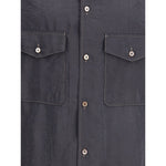 The Convertible Collar Shirt by Lemaire is crafted from a refined dry silk blend, one of the brand’s signature fabrics, offering a soft touch and slightly crinkled texture. Featuring a relaxed cut and a convertible collar with an additional button for styling versatility, it includes a front button closure with mother-of-pearl buttons, long sleeves with straight buttoned cuffs, and chest patch pockets with button flaps. Side slits and a flat pleat at the back complete the design, adding a touch of effortless sophistication.