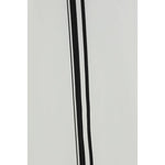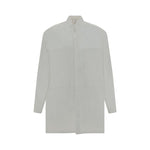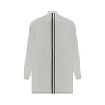 Cotton Shirt by Mordecai, mandarin collar, button front closure, two welt patch pockets on front, contrasting vertical stripes on back panel, monochrome pattern, oversize fit.