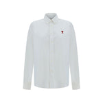Cotton Adc Shirt by Ami Paris, classic collar, front button closure, iconic contrasting embroidered brand logo on front, adjustable button cuffs, monochrome pattern, regular fit.