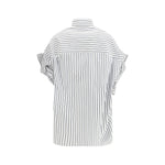 The cuffed sleeve Shirt by Balenciaga is an elegant and contemporary piece, crafted from striped poplin for a refined and versatile look. The classic shirt cut, button-down collar, and seven front buttons with Balenciaga engraving enhance the silhouette, while the short cap sleeves add a modern detail. The design is completed by a chest pocket with embroidered logo and a rounded hem, making this shirt perfect for sophisticated, characterful outfits, ideal for day or evening wear.