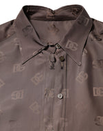 shirt blends classic tailoring with modern luxury. Crafted in a rich brown tone, it features a sharp collared neckline, long sleeves, and subtle logo detailing for a refined touch. Perfect for smart-casual or sophisticated everyday styling.