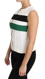 Gorgeous brand new with tags, 100% Authentic Dolce & Gabbana White, black and green stripes cotton sleeveless top with full zip closure.