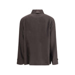 Fendi’s Silk jacquard Shirt is a sophisticated garment that expresses the distinctive elegance of the fashion house. Made of fine jacquard-textured silk, it is embellished with the FF motif embroidered across the surface for a refined and iconic effect. It features a short point collar, a wrap-around closure with concealed buttons and buttoned corner cuffs, completing the design with a tailored touch. Ideal for formal looks or for adding a contemporary luxury accent to everyday outfits.