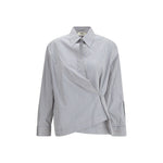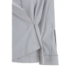 The striped Shirt by Fendi features a long-sleeved, cross-over silhouette that creates a draped effect at the side, enhanced by an asymmetric closure with a small lateral button. A classic shirt collar meets the high...