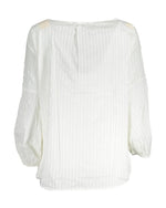 Elegant Gant long sleeve sweater with V-neck Delicate lace detailing and Gant logo Made from high-quality cotton Classic white color Made in India 69% Cotton 31% Lyocell
