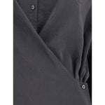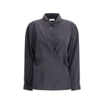 The draped Shirt by Lemaire combines minimal elegance with tailored details. Featuring a classic collar, it features a front closure embellished with a delicate drape, giving movement and sophistication to the garment.
