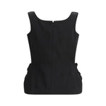 The cotton and silk Top with floral appliqués by Magda Butrym is a sophisticated and refined garment. The wide straps and softly curved neckline create an elegant silhouette, while the darts sculpt the waist and hips for a perfect fit. Two sculptural floral appliqués on the sides, finished with a delicate detail on the hem, add a touch of originality and refinement. Fully lined for comfort, the top closes at the back with a concealed zip for a flawless look.