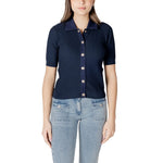The Morgan De Toi women’s short-sleeved knit top, model 241-MBIANCA, combines elegance and comfort in a versatile and refined piece. Made from a blend of 47% polyester, 33% viscose, and 20% polyamide, this knit offers a pleasant feel on the skin and a fitted silhouette that enhances your figure. The design features a honeycomb knit texture for added character, while the contrasting collar and metallic button front closure bring a touch of contemporary style. Ideal for both casual settings and more elegant occasions, it pairs effortlessly with jeans or skirts for a polished and fashionable look.