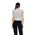 The Morgan De Toi women’s blouse, model 242-OPLI, embodies elegant and contemporary style, perfect for any occasion. Crafted from 100% polyester, this sleeveless blouse features a refined classic collar and vertical pleats on the front, adding a sophisticated touch to your look. The front closure is enhanced by a row of decorative buttons, offering both charm and practicality. The slightly flared cut and fitted waistline accentuate the feminine silhouette, making this blouse ideal for both professional outfits and more casual combinations. The lightweight, soft fabric ensures comfort and breathability throughout the day.