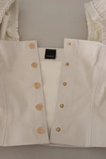Gorgeous brand new with tags, 100% Authentic PINKO button down cropped top features a square neck and 3/4 sleeves.