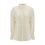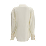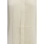 The shaped silk tuxedo Shirt by Róhe offers a contemporary take on a classic formal staple. Crafted from pure silk, it features a subtle stand-up collar, statement double cuffs and a waisted fit that enhances the silhouette. A refined pleated front panel adds elegance and structure, while the curved hemline completes the look with a polished, modern finish.