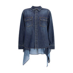 The denim and satin Shirt by Sacai reimagines a classic staple through the brand’s signature hybrid approach. Dark-wash denim is layered over smooth satin, creating a refined play of textures. A polo collar, angled chest pockets, and snap-button fastening complete the design, balancing functionality with contemporary elegance.