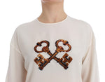 Gorgeous brand new with tags, 100% Authentic DOLCE & GABBANA white silk sequined key blouse top. This item comes from the exclusive MainLine Dolce & Gabbana Collection.