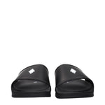 The product with MPN CMIC001MAT001100 and code F84874 rubber in black is a slippers and clogs designed by Marcelo Burlon. It has features like front logo.