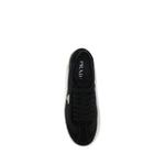 Leather Sneakers by Prada combine contemporary style with everyday comfort. Featuring a flat rubber sole and round toe, they are distinguished by the iconic triangular side-applied plaque and tone-on-tone logo on the back, adding a distinctive and refined touch to the design.