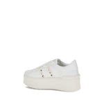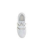 Valentino Garavani’s Rockstud Untitled Flatform Sneakers reinterpret an iconic model with a contemporary twist. Made of smooth calfskin, they are distinguished by a platinum-finish studded band, emblematic of the brand’s gritty style. The special label with the number 11 celebrates its membership in the Untitled collection. Complemented by a rubber flatform sole with embossed studs on the back, they combine height, comfort and personality.