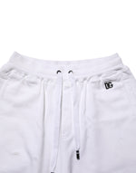 Bermuda sweatshorts deliver casual comfort with a designer edge. Crafted from a soft white cotton, they feature a relaxed fit, elastic waistband with drawstring, and a clean Bermuda-length cut. Perfect for lounging, workouts, or weekend styling, they combine sporty ease with subtle luxury appeal.