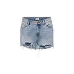 Discover the Only ONLPACY HW DNM SHORTS NOOS women’s shorts, a must-have piece for your summer wardrobe. Made from 100% cotton, these shorts offer a fresh and lightweight feel, perfect for hot days. The high-waisted design enhances the silhouette, while the short cut with frayed hems and distressed details adds a trendy, modern touch. Featuring classic belt loops, a front button and zip closure, and five practical pockets, these shorts combine style and functionality. Ideal for casual looks, festivals, or city strolls, they pair easily with tops and t-shirts for a fashionable outfit.