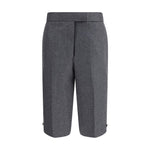 The wool Bermuda Shorts by Thom Browne combine sartorial elegance with contemporary style. They feature a button and concealed hook-and-eye closure, two side pockets and two back welt pockets. Small side slits add comfort and freedom of movement for a refined yet casual look.