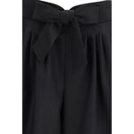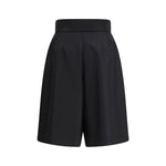 The bow-detail Bermuda Shorts by Valentino Garavani offer a refined take on tailoring with a distinctly feminine twist. Crafted from mohair wool, they feature a wide leg and front pleats that shape a soft yet structured silhouette. The oversized silk bow at the waistband stands out as the signature accent, while the side zip-and-hook closure and side pockets complete this modern, elevated design.