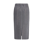 The pencil Skirt by Brunello Cucinelli combines refined tailoring with the luminous touch of sequins, creating a perfect balance between elegance and modernity. The mid-rise waist and straight hem with a back slit enhance the silhouette with sophisticated femininity. The midi length adds a discreet and versatile charm, making it ideal for expressing style in both formal occasions and more relaxed moments.
