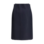 The blue Prada chevron Wool midi Skirt features an elastic waistband with a bow detail at the front. Finished with two inset side pockets and a straight hem, it combines feminine accents with practicality in an elegant and contemporary piece.