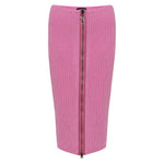 Tom Ford Pink Knit Zip Pencil Skirt. Central zip with double slider and padlocks, ribbed knitwear fabric, below-the-knee length. Composition: 55% Wool, 19% Silk, 14% Polyamide, 9% Polyester, 3% Elastane